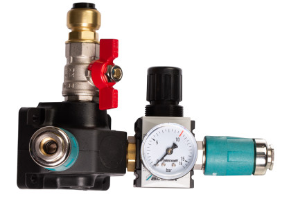 Rozdělovací krabice se 2 rychlospojkami, ventilem, regulátorem s filtrem ø 15 mm